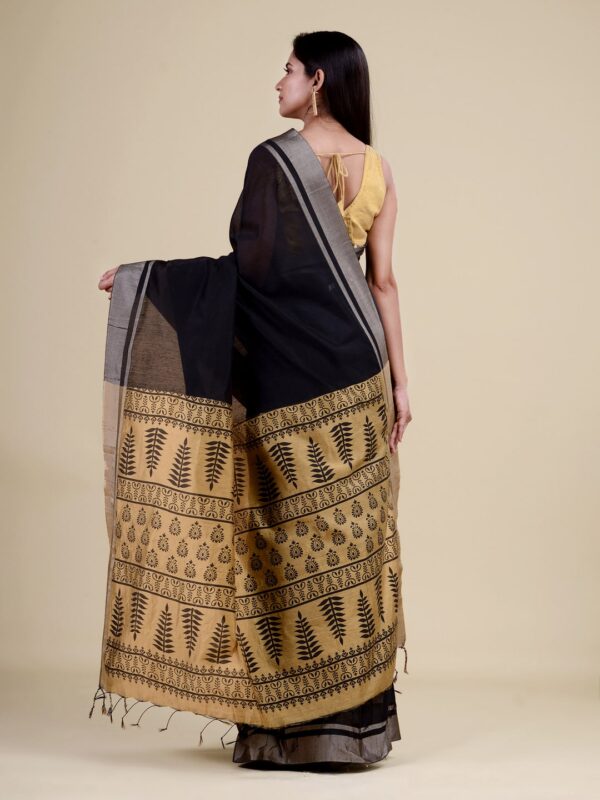 Black & Golden cotton handloom saree with blouse material.