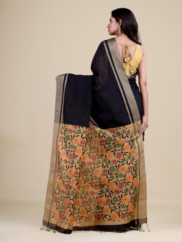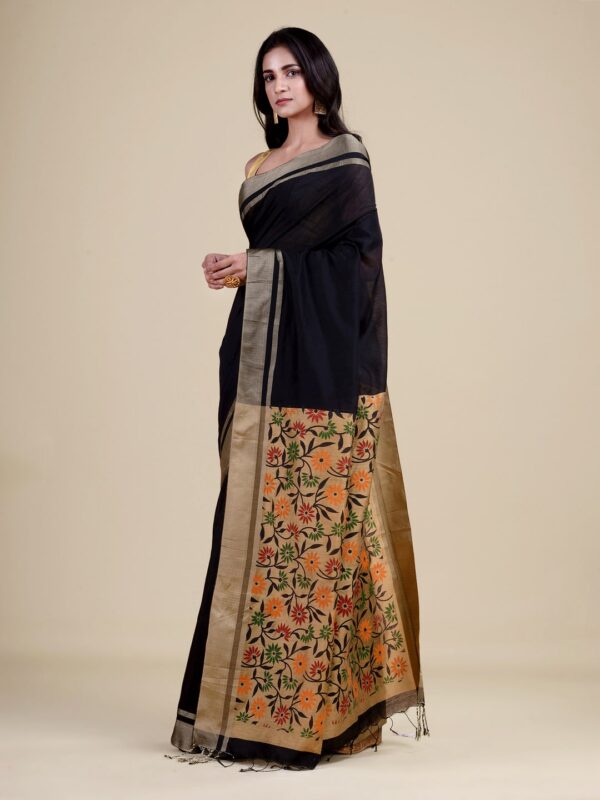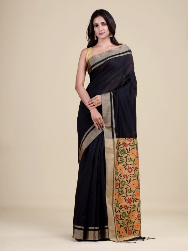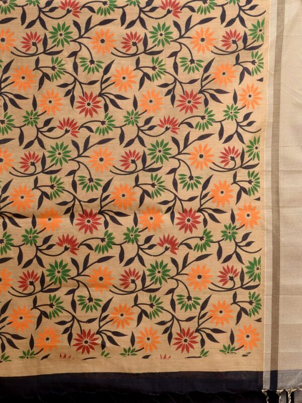 Be the first to review “Black & Golden floral printed cotton handloom saree with blouse material”