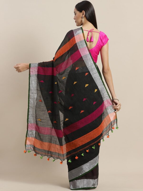 Black & Pink Cotton handloom saree.