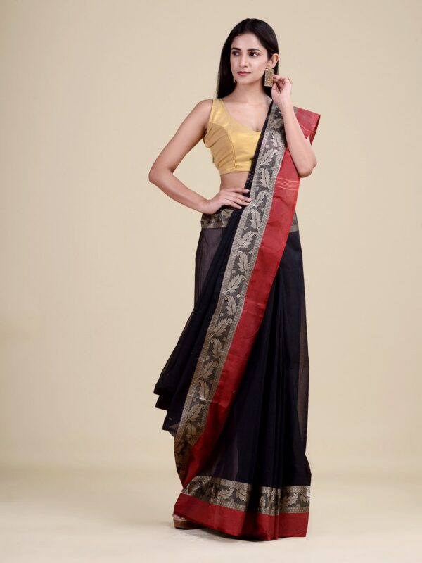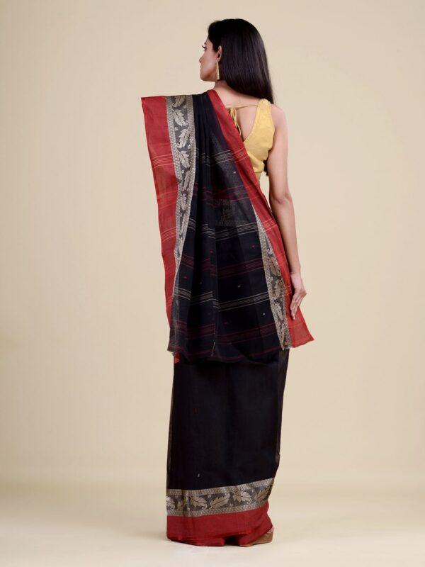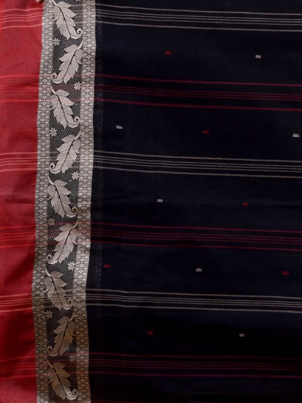 BLACK & RED TANT Jamdani Hand Woven silk Handloom Saree.
