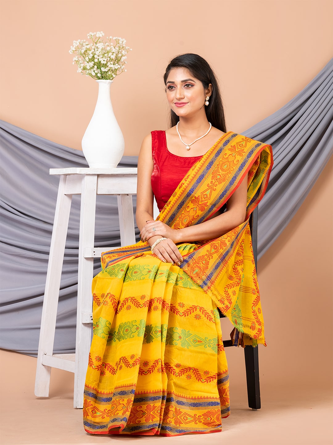 We are a saree brand from Kolkata. We bring you the latest designs of Bengal cotton handlooms and Bengal Tant sarees. You can wear our collection of sarees for weddings and any Bengali festival. Our Handloom Cotton, Jamdani or Tant sarees must be dry washed after use.