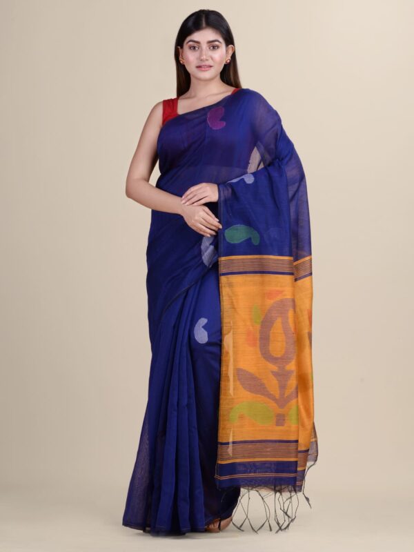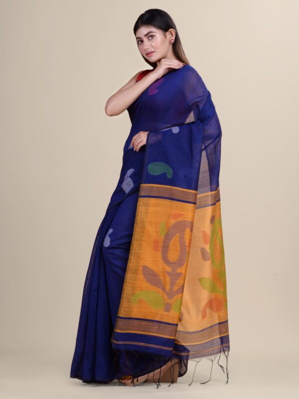 The Handloom sari is a traditional Indian attire that can be worn on all occasions, be it a wedding or a religious event. It has become very popular among women in India. This handloom sari is made from soft cotton fabric and decorated with multi-color thread-weaved designs to give it an elegant look. This beautiful sari is a great investment piece and can be worn on all occasions. It comes with an unstitched blouse piece which will fit perfectly with your body type.