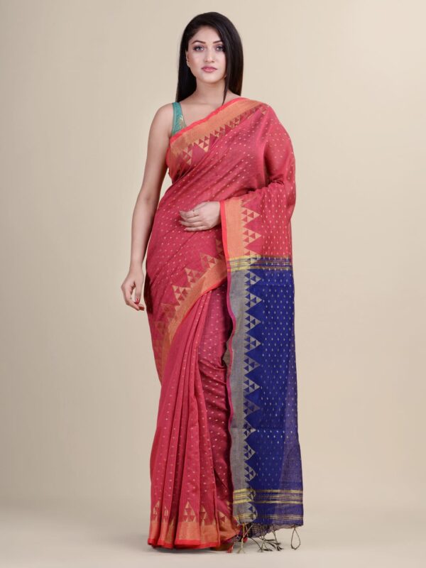The Handloom sari is a traditional Indian attire that can be worn on all occasions, be it a wedding or a religious event. It has become very popular among women in India. This handloom sari is made from soft cotton fabric and decorated with multi-color thread-weaved designs to give it an elegant look. This beautiful sari is a great investment piece and can be worn on all occasions. It comes with an unstitched blouse piece which will fit perfectly with your body type.