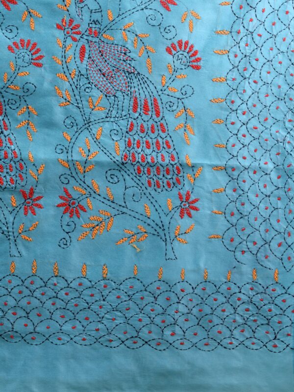 Be the first to review “BLUE,RED & YELLOW KATHA STITCH Saree.”