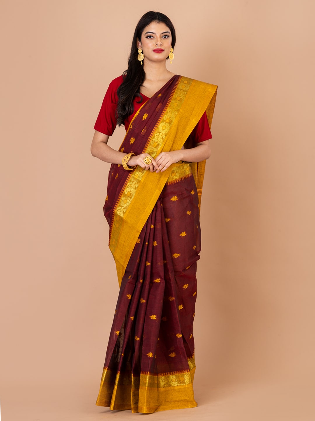 We are a saree brand from Kolkata. We bring you the latest designs of Bengal cotton handlooms and Bengal Tant sarees. You can wear our collection of sarees for weddings and any Bengali festival. Our Handloom Cotton, Jamdani or Tant sarees must be dry washed after use.