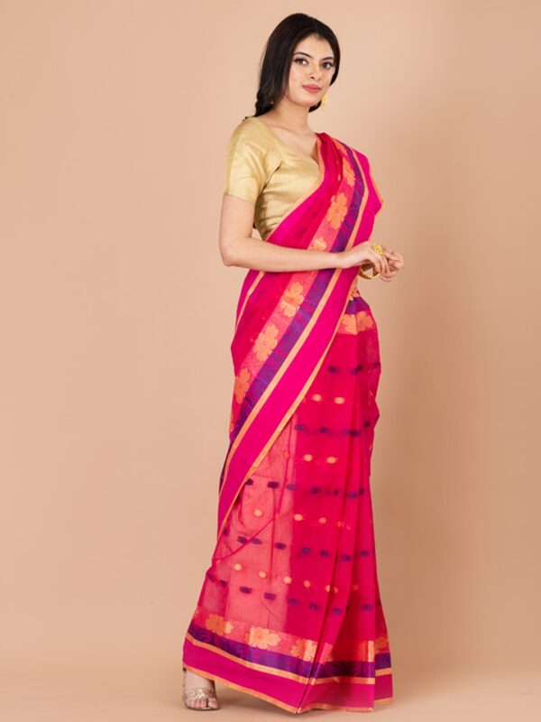 Be the first to review “Deep Pink & Multi floral design Tant Saree.”