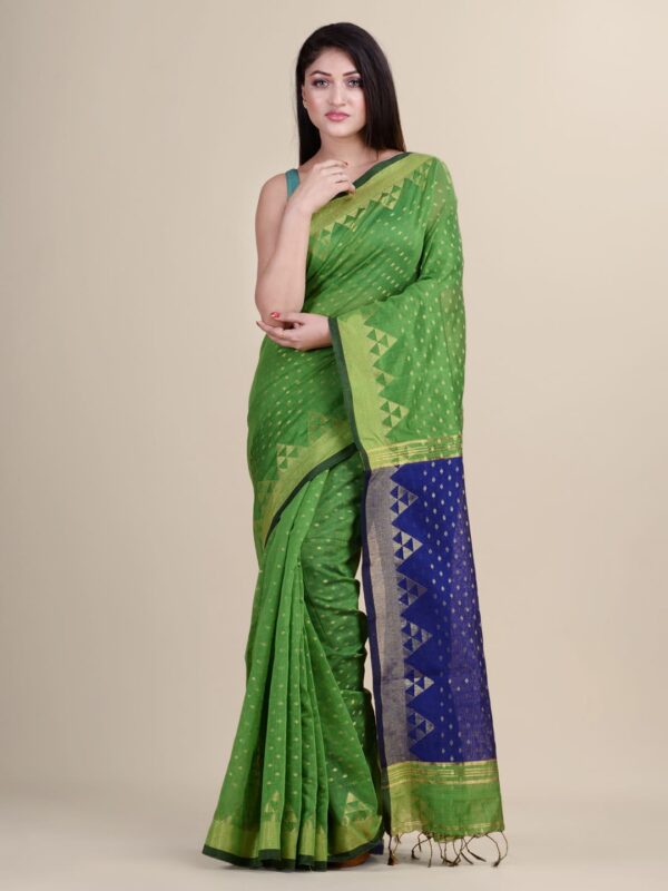 The Handloom sari is a traditional Indian attire that can be worn on all occasions, be it a wedding or a religious event. It has become very popular among women in India. This handloom sari is made from soft cotton fabric and decorated with multi-color thread-weaved designs to give it an elegant look. This beautiful sari is a great investment piece and can be worn on all occasions. It comes with an unstitched blouse piece which will fit perfectly with your body type.