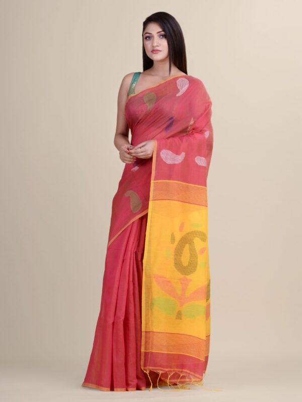 Pink & Yellow cotton handloom Saree