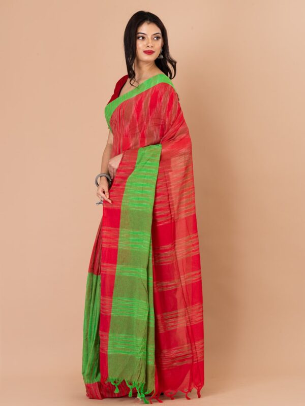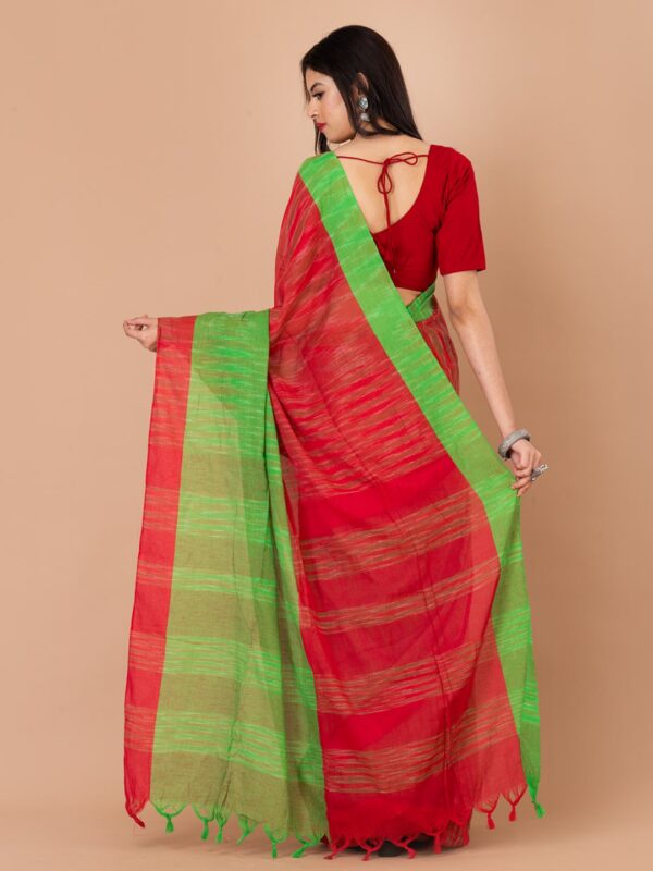 The Handloom sari is a traditional Indian attire that can be worn on all occasions, be it a wedding or a religious event. It has become very popular among women in India. This handloom sari is made from soft cotton fabric and decorated with multi-color thread-weaved designs to give it an elegant look. This beautiful sari is a great investment piece and can be worn on all occasions. It comes with an unstitched blouse piece which will fit perfectly with your body type.