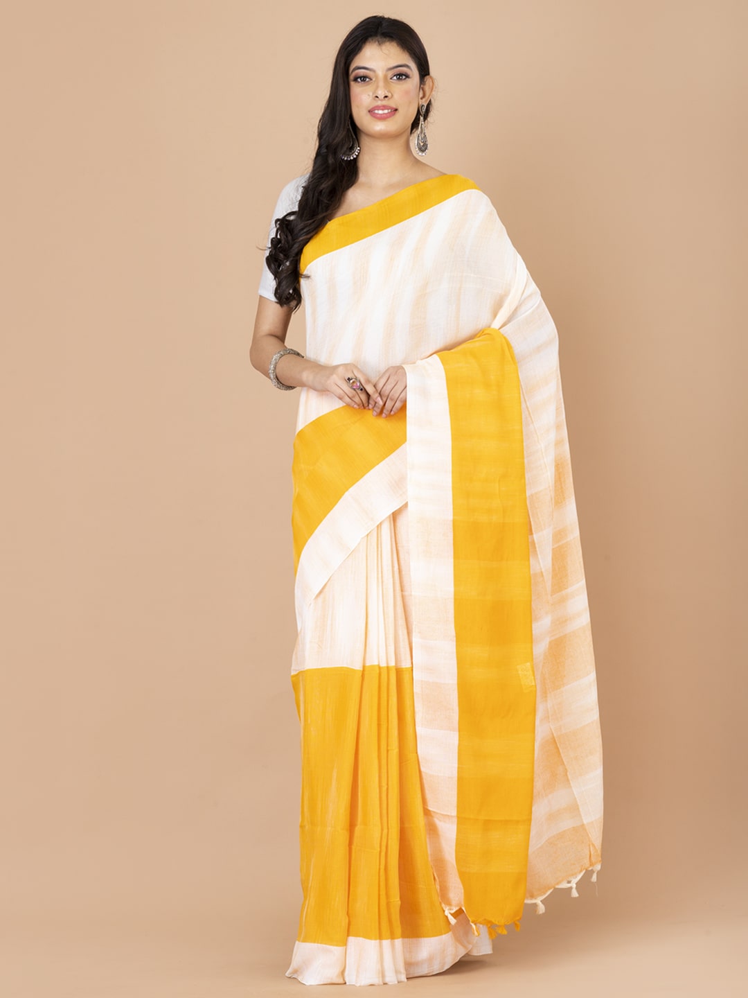 The Handloom sari is a traditional Indian attire that can be worn on all occasions, be it a wedding or a religious event. It has become very popular among women in India. This handloom sari is made from soft cotton fabric and decorated with multi-color thread-weaved designs to give it an elegant look. This beautiful sari is a great investment piece and can be worn on all occasions. It comes with an unstitched blouse piece which will fit perfectly with your body type.