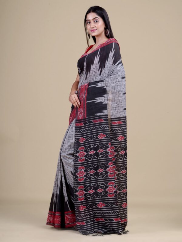 Grey & Black pure cotton handloom saree with blouse material.