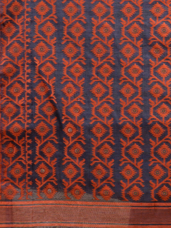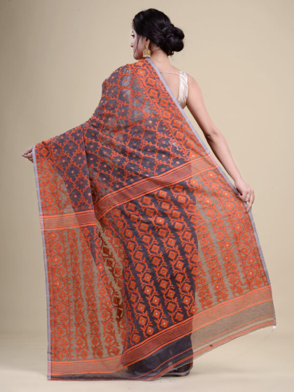 Grey & Orange pure cotton Dhakai Jamdani Saree.