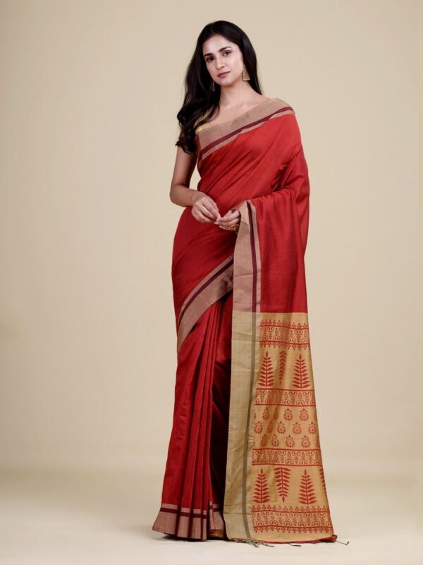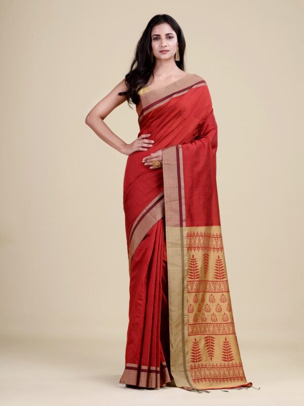 Be the first to review “Maroon & Golden cotton handloom saree with blouse material.”