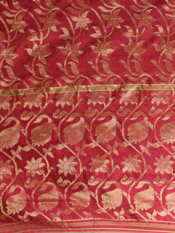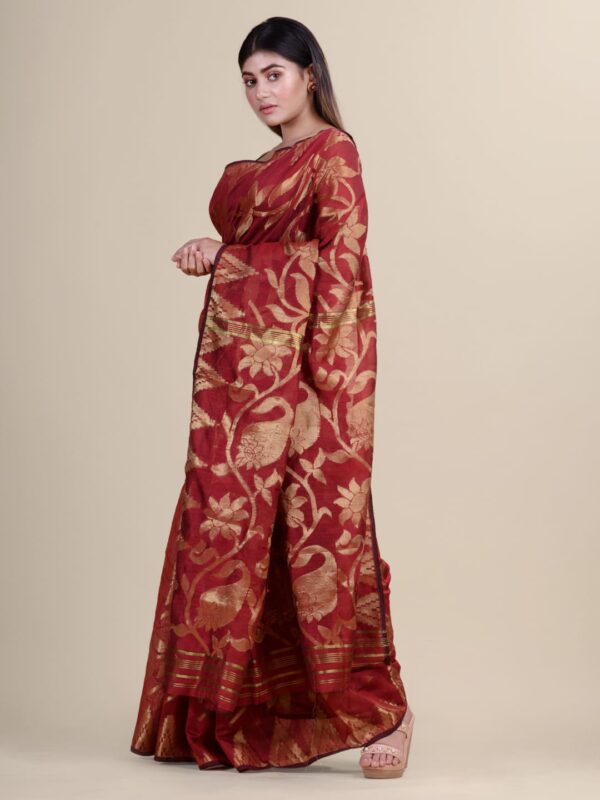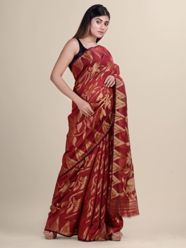 Maroon & Golden floral design cotton silk Jamdani Saree.