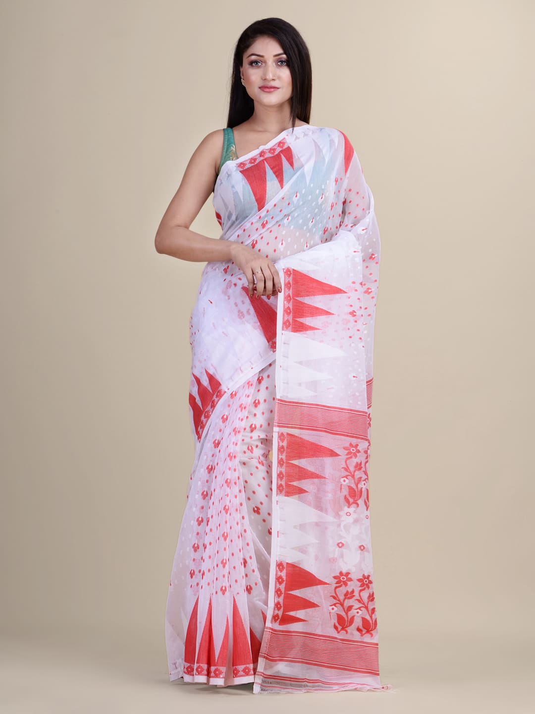 Laa Calcutta’s Jamdani Sarees is made of soft cotton and feature intricate dhakai jamdani designs. Our Jamdani Silk Sarees are also popular for their beautiful designs and quality craftsmanship. Jamdani saree is all about floral, paisley, ethnic motifs design on it. The vivid color and the comfortable fabric makes it more worthy.