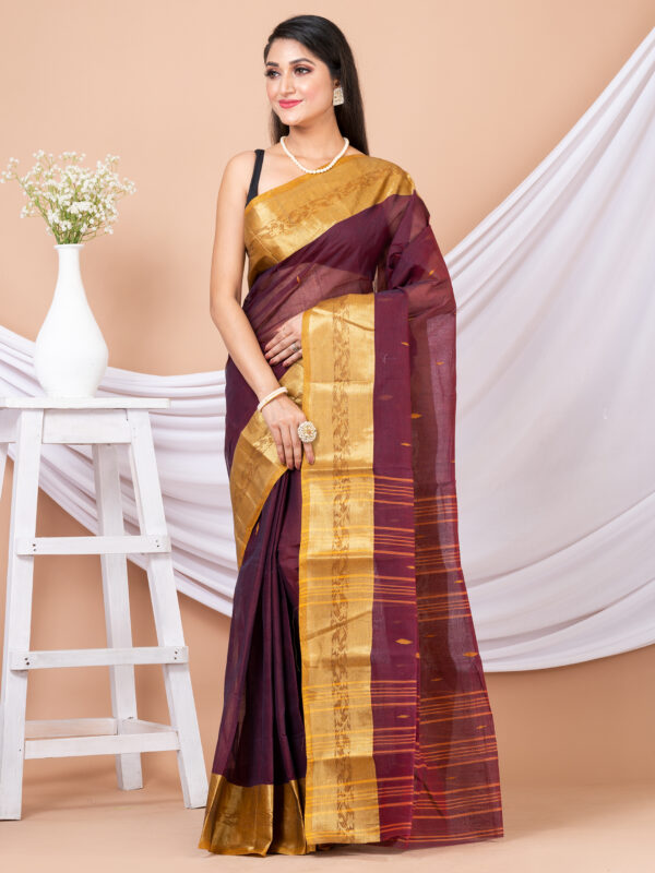 Maroon & Yellow Floral woven design pure cotton tant saree