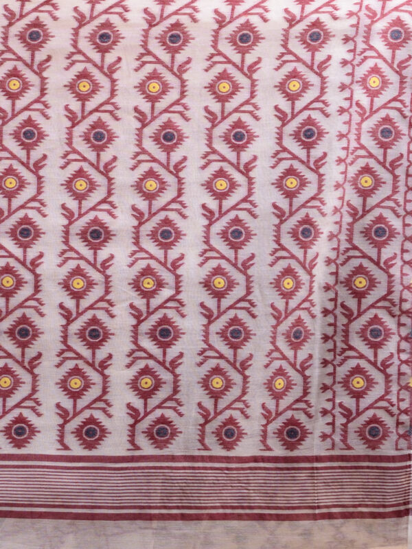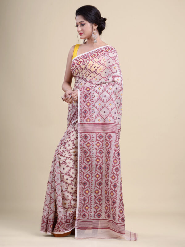 Off white & Maroon pure cotton Dhakai Jamdani Saree.