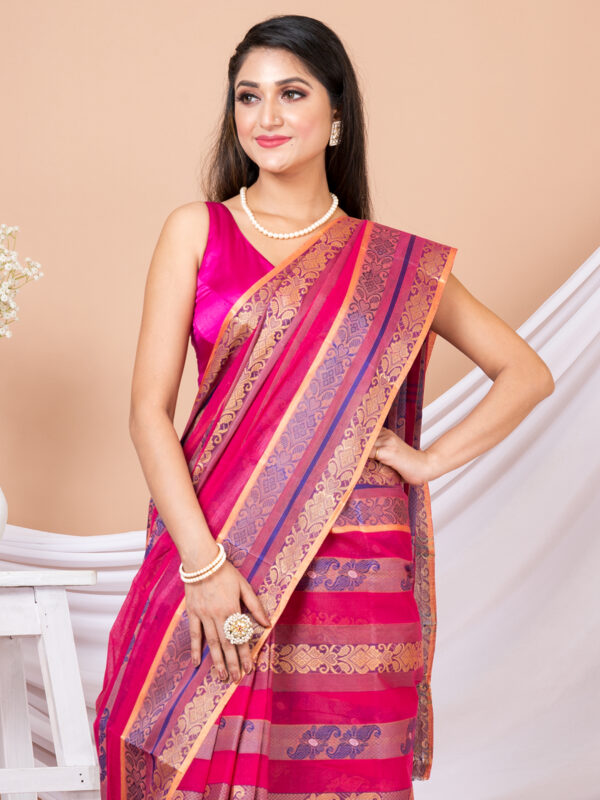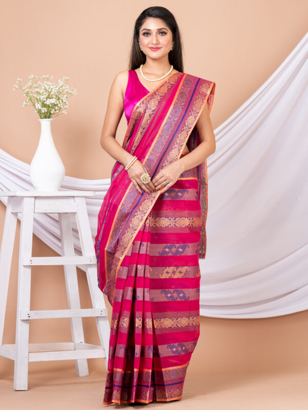 Bengal cotton Tant sarees are a traditional garment of Indian women. This attractive saree is comfortable and easy to wear. Made with high-quality fabrics, classic designs and contemporary style, this sari will be your best option for daily wear as well as special occasions. The saree is a traditional Indian garment that is worn by women across the country. The sari has been worn for thousands of years and is one of the most popular forms of dress in India.
