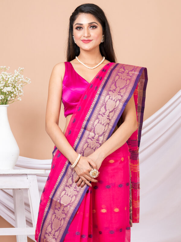 Bengal cotton Tant sarees are a traditional garment of Indian women. This attractive saree is comfortable and easy to wear. Made with high-quality fabrics, classic designs and contemporary style, this sari will be your best option for daily wear as well as special occasions. The saree is a traditional Indian garment that is worn by women across the country. The sari has been worn for thousands of years and is one of the most popular forms of dress in India.