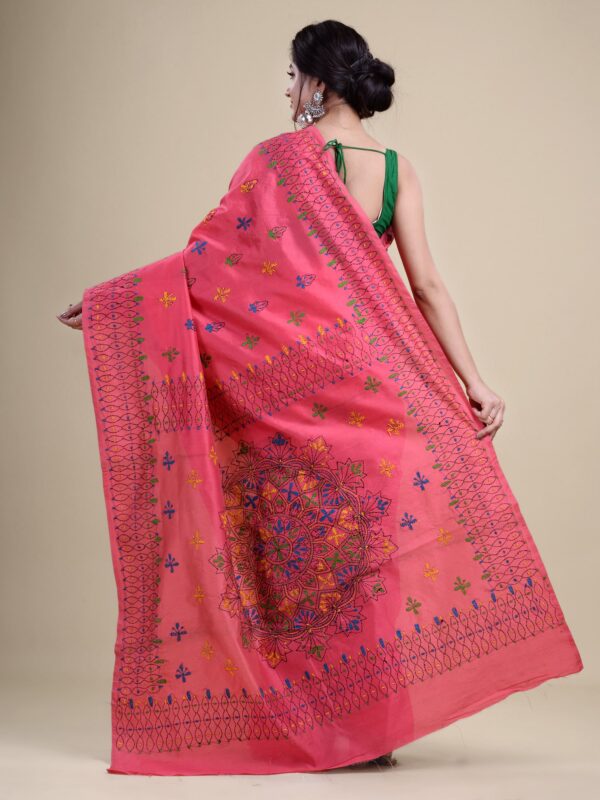 The Handloom sari is a traditional Indian attire that can be worn on all occasions, be it a wedding or a religious event. It has become very popular among women in India. This handloom sari is made from soft cotton fabric and decorated with multi-color thread-weaved designs to give it an elegant look. This beautiful sari is a great investment piece and can be worn on all occasions. It comes with an unstitched blouse piece which will fit perfectly with your body type.