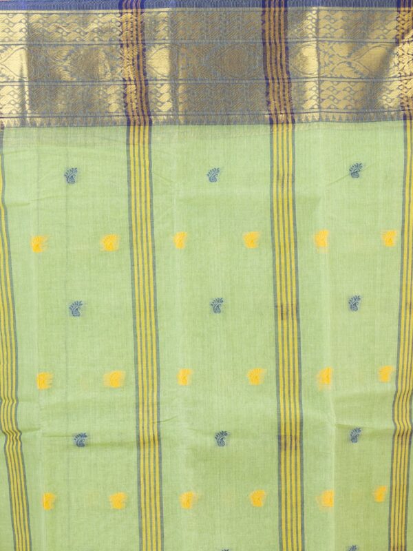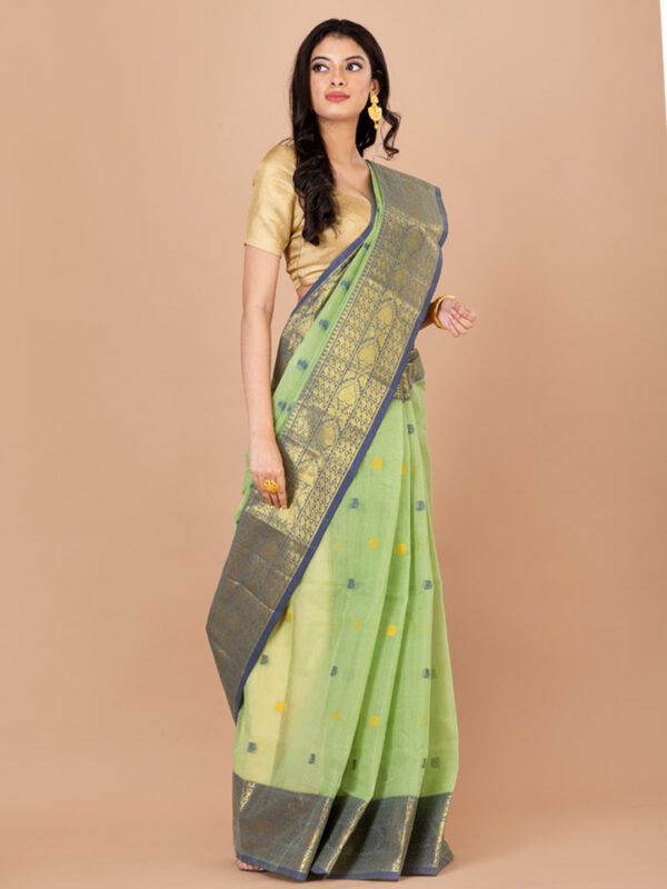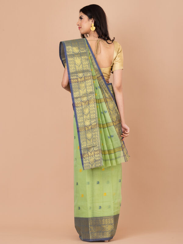 Pista green & Navy blue paisley design pure cotton tant Saree