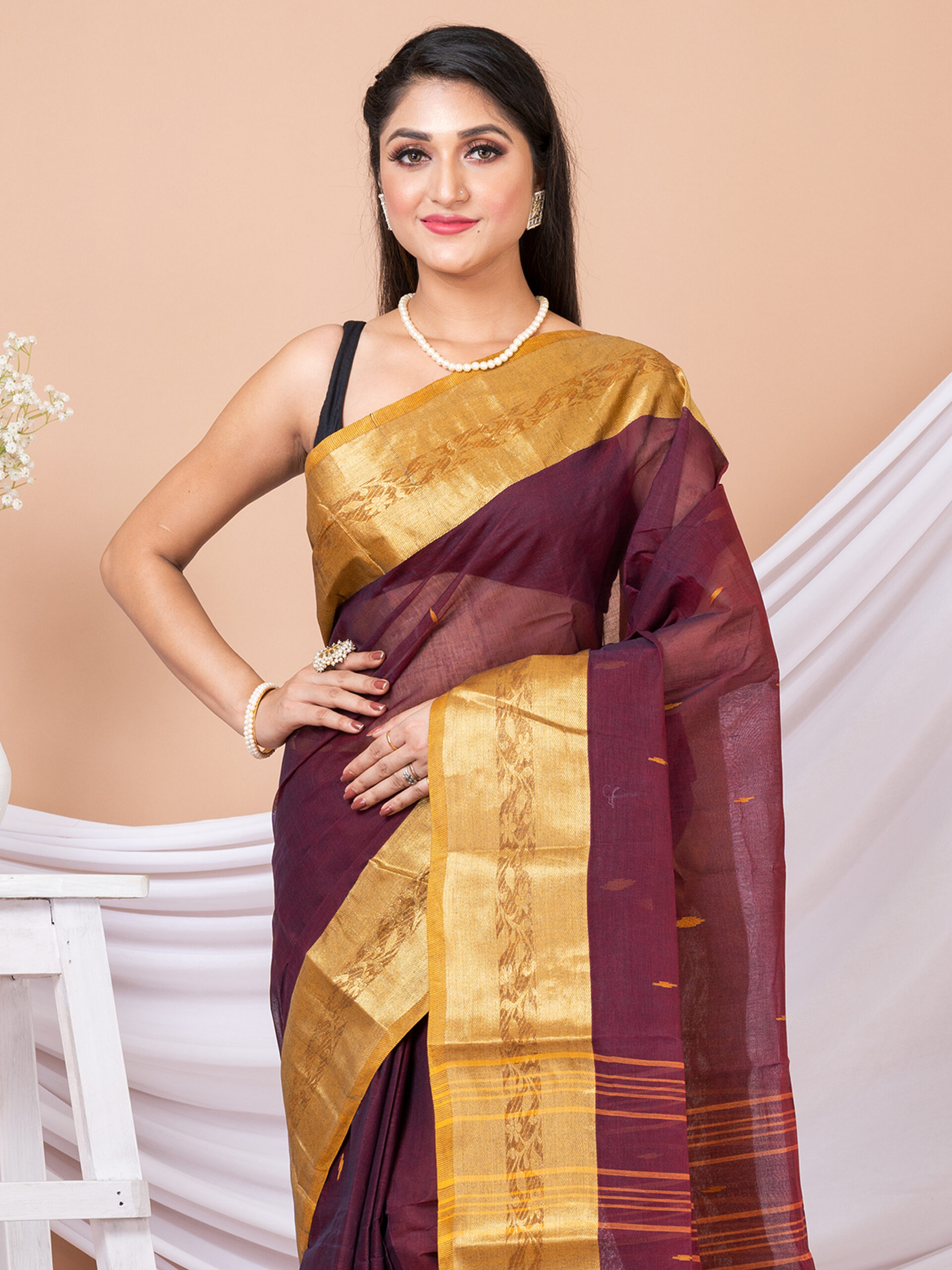 Bengal cotton Tant sarees are a traditional garment of Indian women. This attractive saree is comfortable and easy to wear. Made with high-quality fabrics, classic designs and contemporary style, this sari will be your best option for daily wear as well as special occasions. The saree is a traditional Indian garment that is worn by women across the country. The sari has been worn for thousands of years and is one of the most popular forms of dress in India.