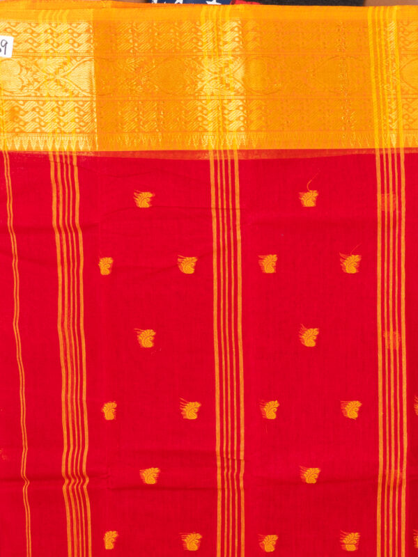 Red & Orange paisley design pure cotton tant Saree