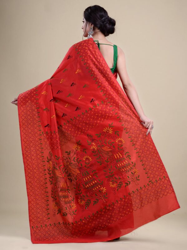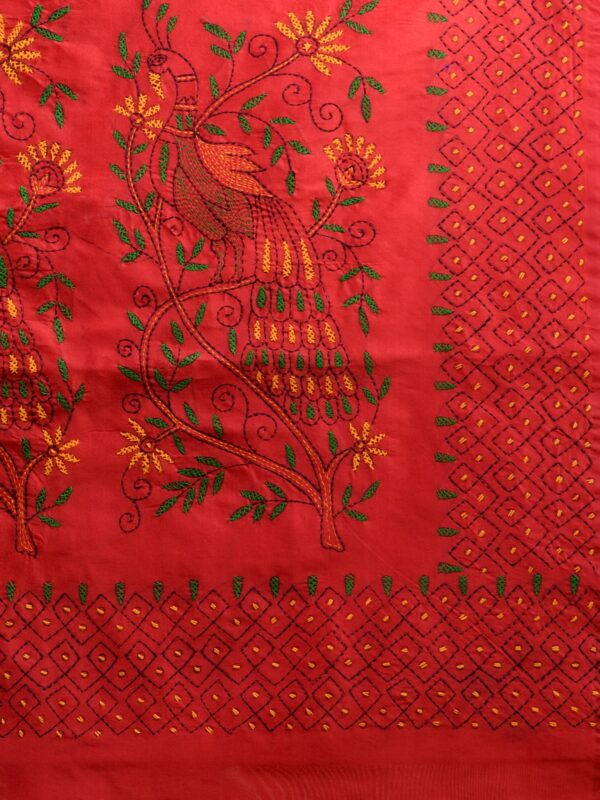 Be the first to review “RED,YELLOW & GREEN KATHA STITCH Saree.”