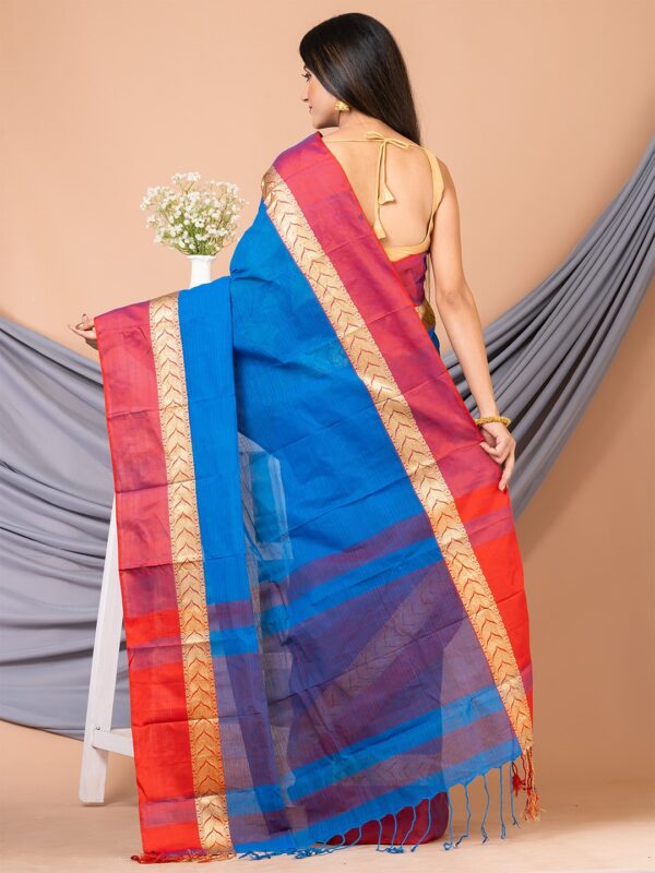 The Handloom sari is a traditional Indian attire that can be worn on all occasions, be it a wedding or a religious event. It has become very popular among women in India. This handloom sari is made from soft cotton fabric and decorated with multi-color thread-weaved designs to give it an elegant look. This beautiful sari is a great investment piece and can be worn on all occasions. It comes with an unstitched blouse piece which will fit perfectly with your body type.