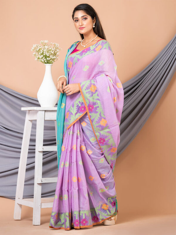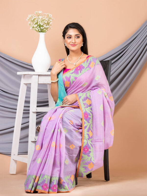 The Handloom sari is a traditional Indian attire that can be worn on all occasions, be it a wedding or a religious event. It has become very popular among women in India. This handloom sari is made from soft cotton fabric and decorated with multi-color thread-weaved designs to give it an elegant look. This beautiful sari is a great investment piece and can be worn on all occasions. It comes with an unstitched blouse piece which will fit perfectly with your body type.
