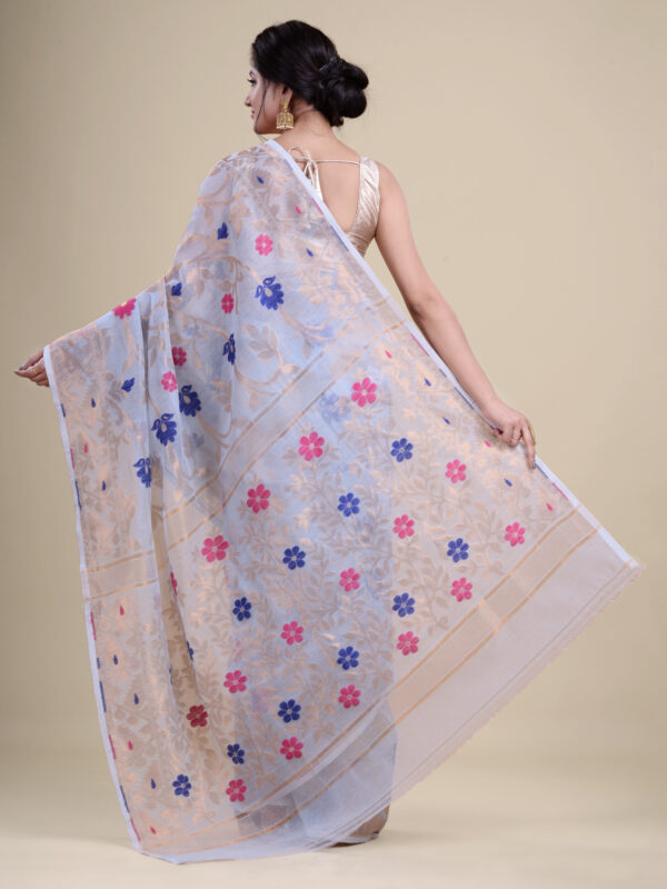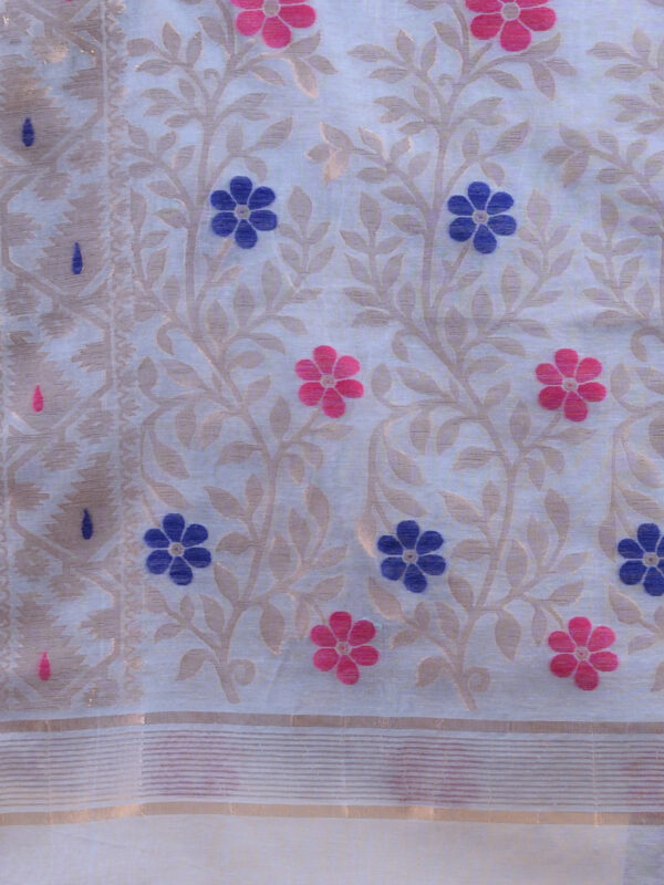 Sky blue & Golden floral design cotton silk Dhakai Jamdani Saree.