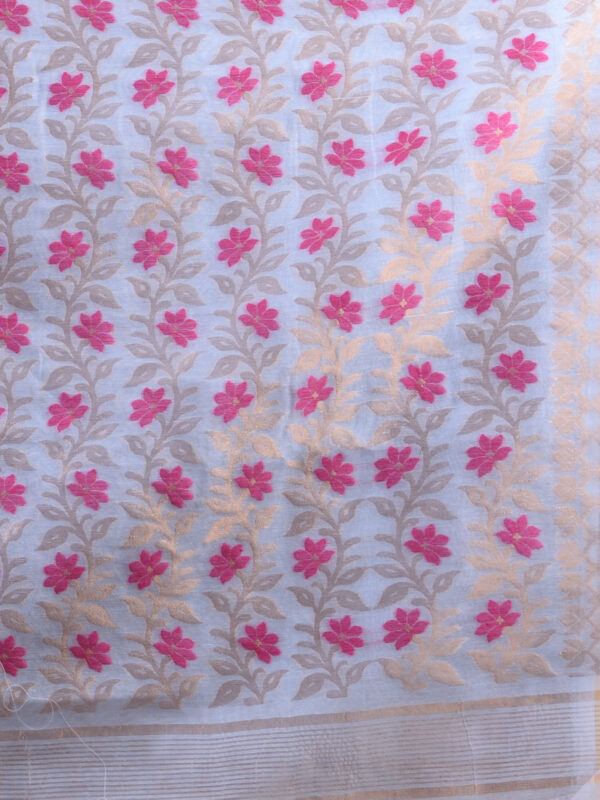 Sky Blue & Pink floral design cotton silk Dhakai Jamdani Saree. (Copy)