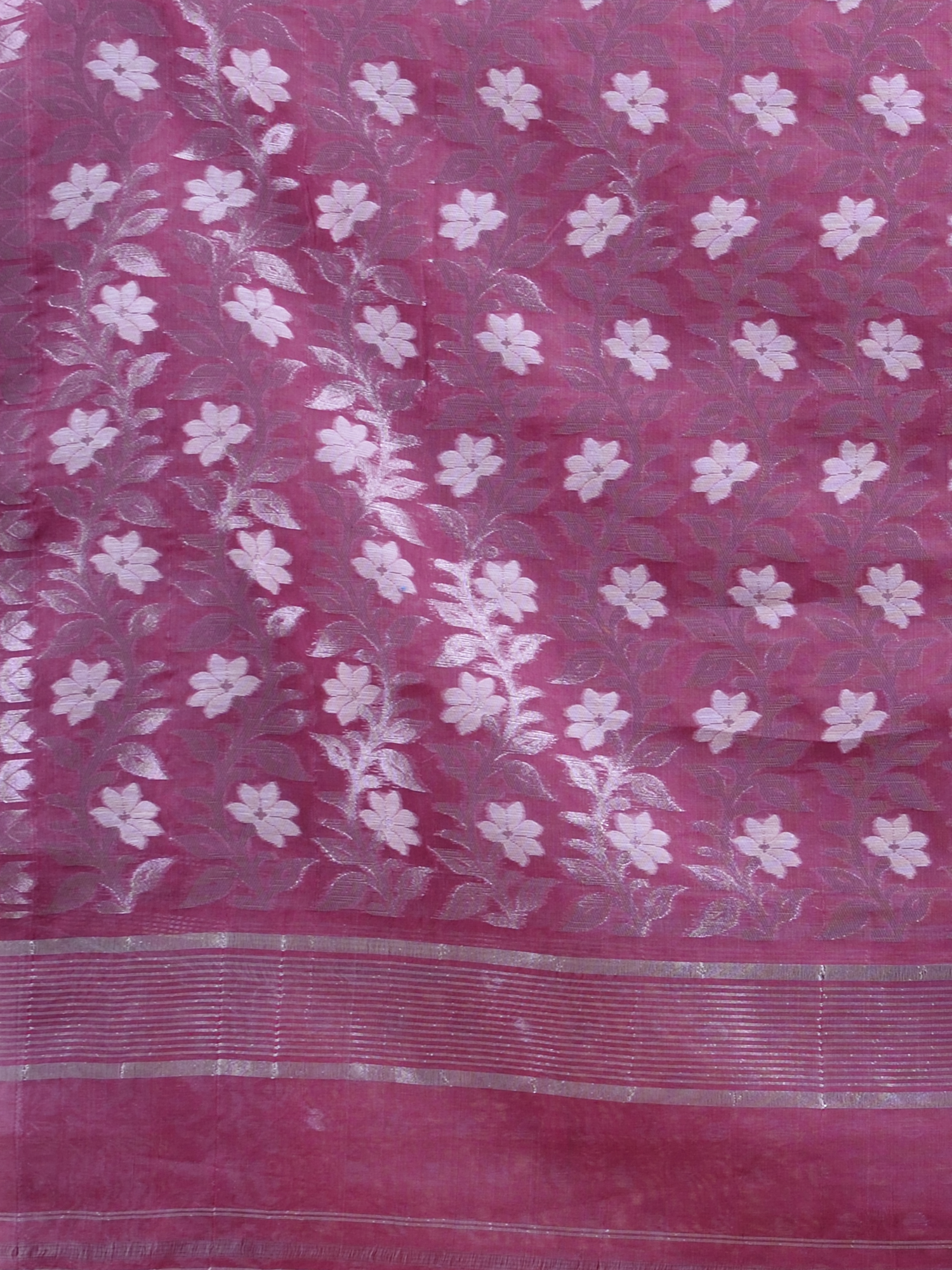Sky Blue & Pink floral design cotton silk Dhakai Jamdani Saree.