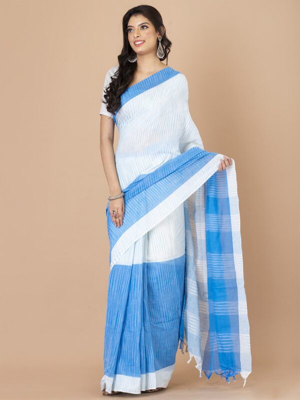 The Handloom sari is a traditional Indian attire that can be worn on all occasions, be it a wedding or a religious event. It has become very popular among women in India. This handloom sari is made from soft cotton fabric and decorated with multi-color thread-weaved designs to give it an elegant look. This beautiful sari is a great investment piece and can be worn on all occasions. It comes with an unstitched blouse piece which will fit perfectly with your body type.