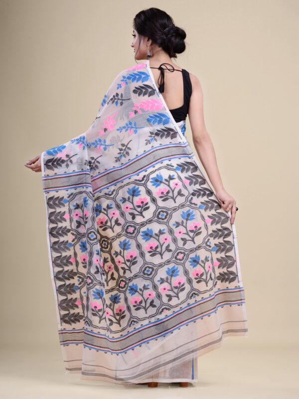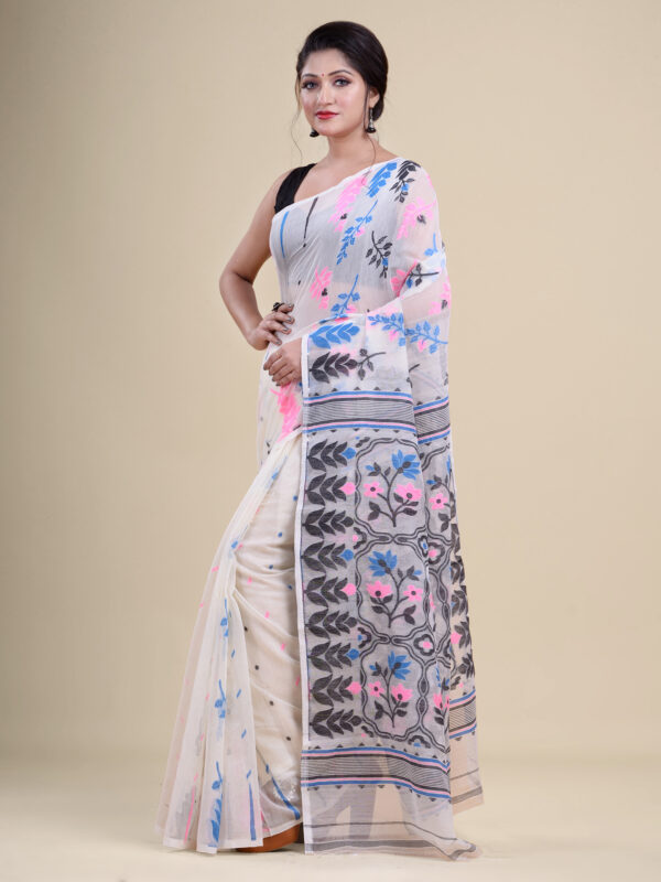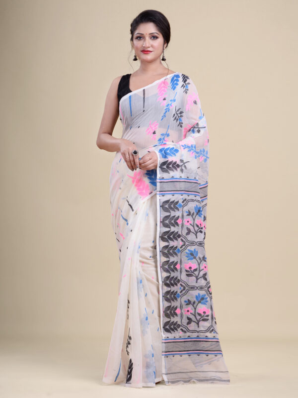 Laa Calcutta’s Jamdani Sarees is made of soft cotton and feature intricate dhakai jamdani designs. Our Jamdani Silk Sarees are also popular for their beautiful designs and quality craftsmanship. Jamdani saree is all about floral, paisley, ethnic motifs design on it. The vivid color and the comfortable fabric makes it more worthy.