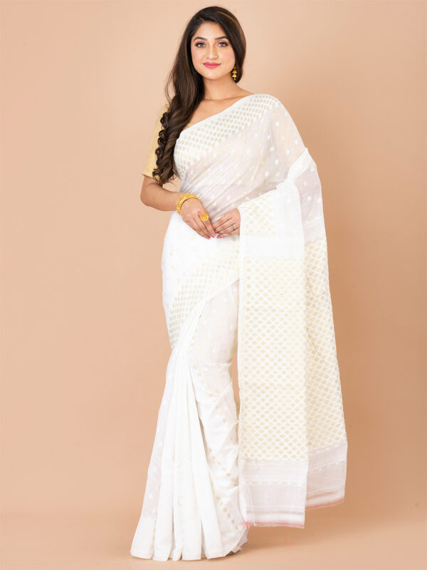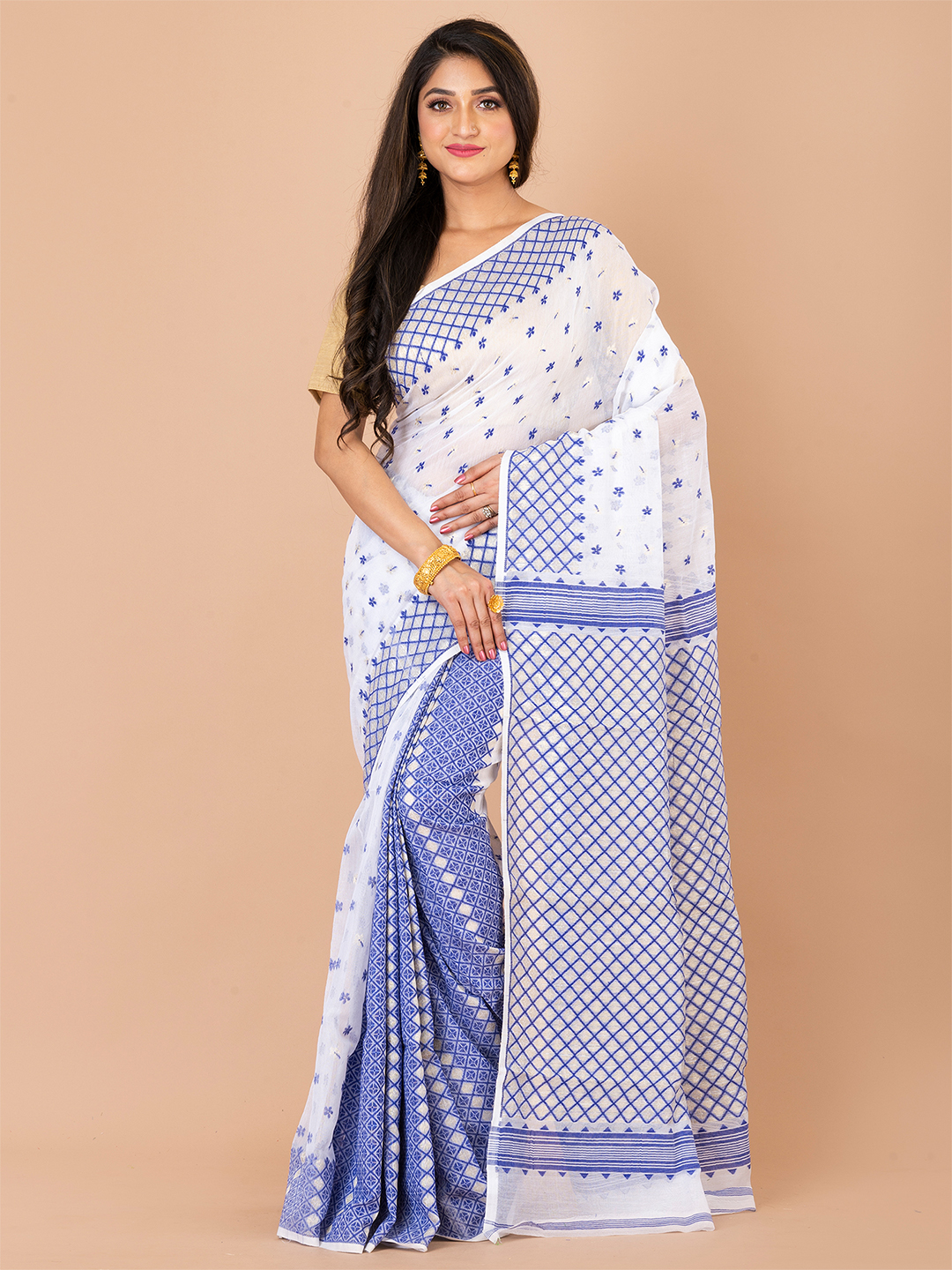 Our Jamdani Sarees is made of soft cotton and feature intricate dhakai