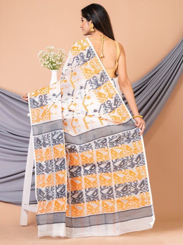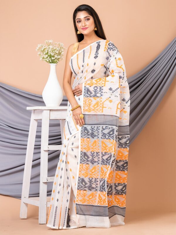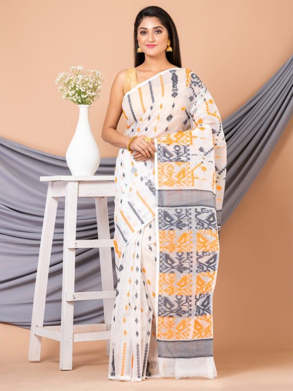 Be the first to review “White & Multi pure cotton ethnic motifs jamdani saree”
