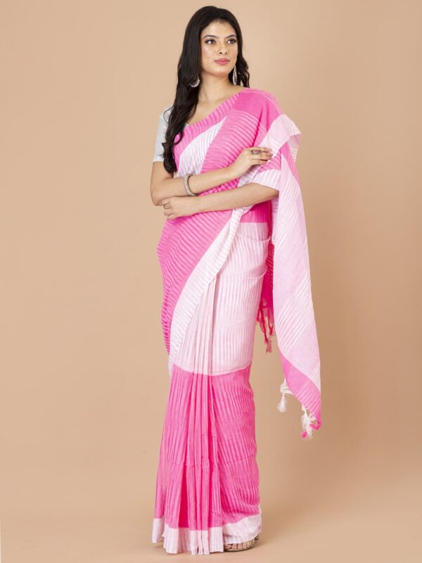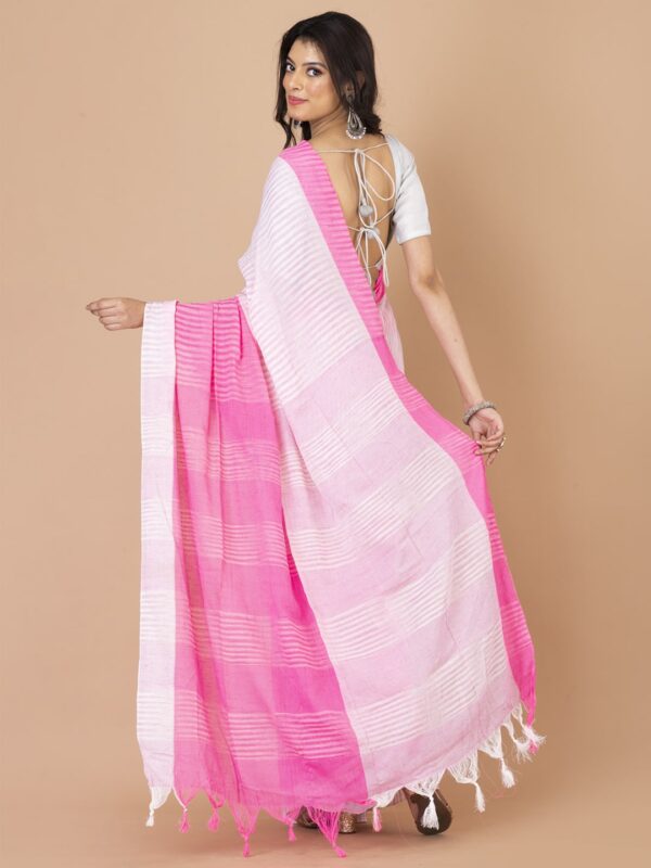 White & Pink Cotton handloom saree.