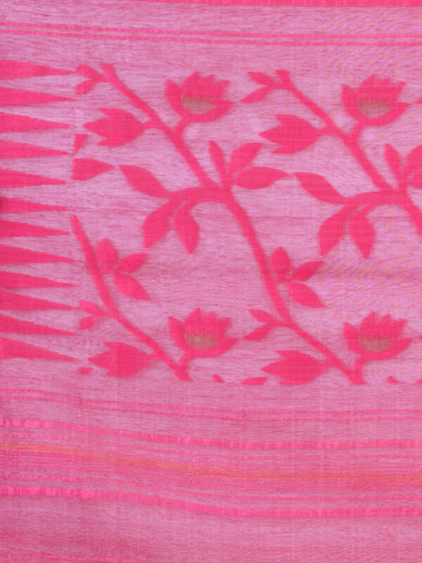 White & Pink floral design cotton Jamdani Saree.