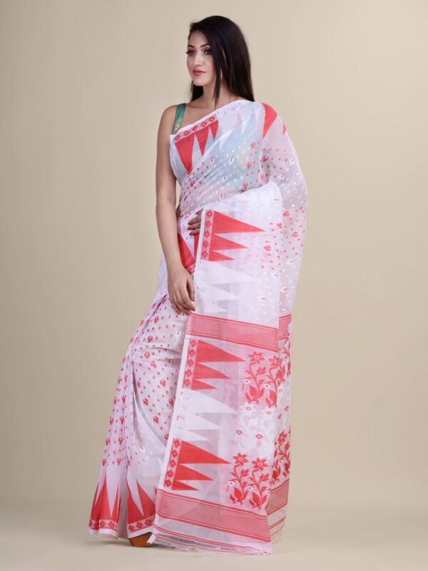 Laa Calcutta’s Jamdani Sarees is made of soft cotton and feature intricate dhakai jamdani designs. Our Jamdani Silk Sarees are also popular for their beautiful designs and quality craftsmanship. Jamdani saree is all about floral, paisley, ethnic motifs design on it. The vivid color and the comfortable fabric makes it more worthy.