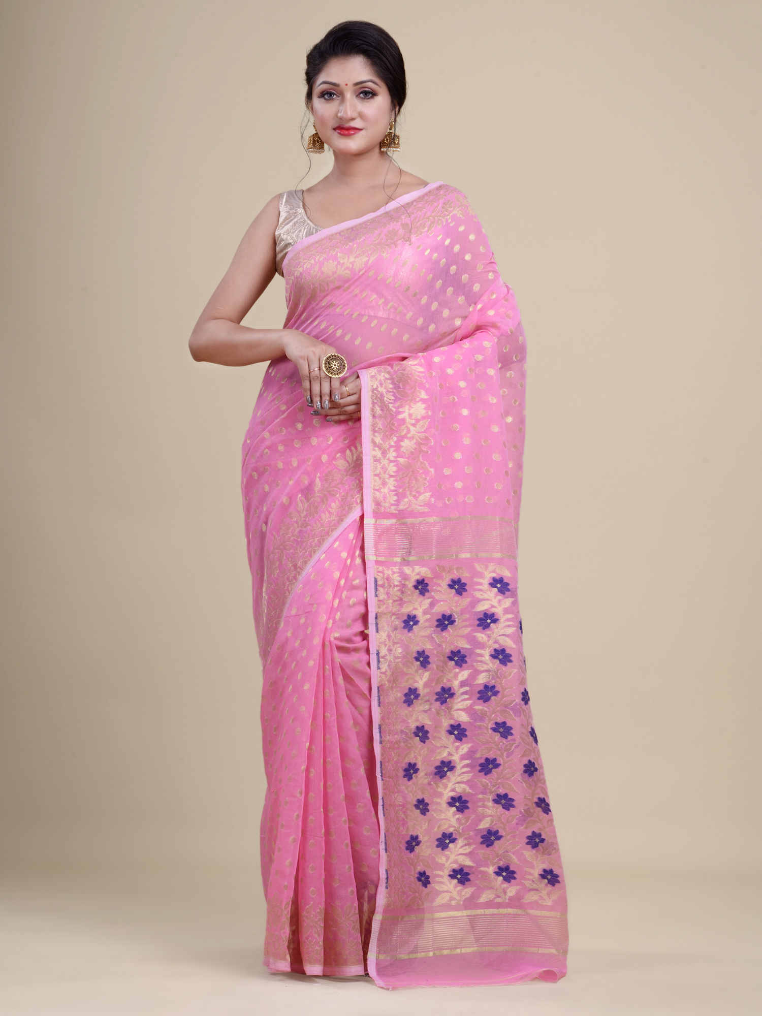Laa Calcutta’s Jamdani Sarees is made of soft cotton and feature intricate dhakai jamdani designs. Our Jamdani Silk Sarees are also popular for their beautiful designs and quality craftsmanship. Jamdani saree is all about floral, paisley, ethnic motifs design on it. The vivid color and the comfortable fabric makes it more worthy.