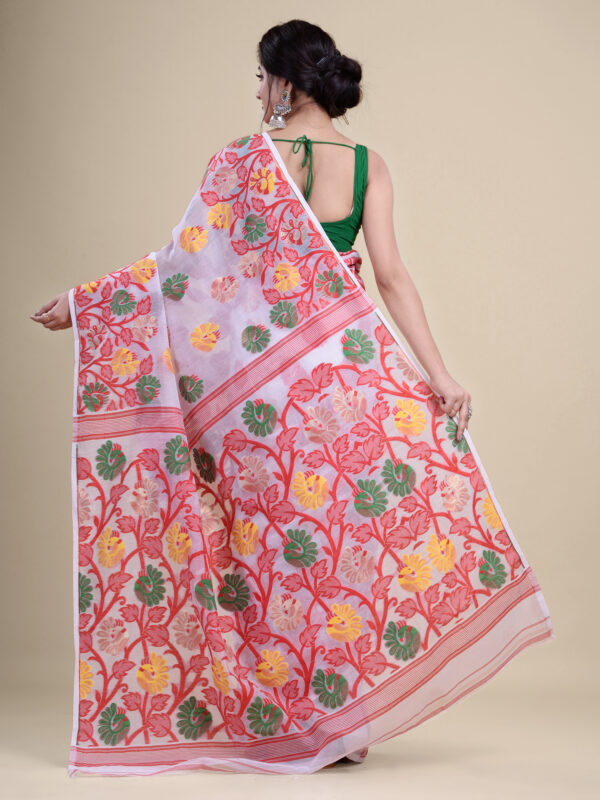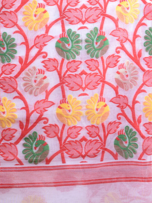 White & Red floral design pure cotton Dhakai Jamdani Saree.