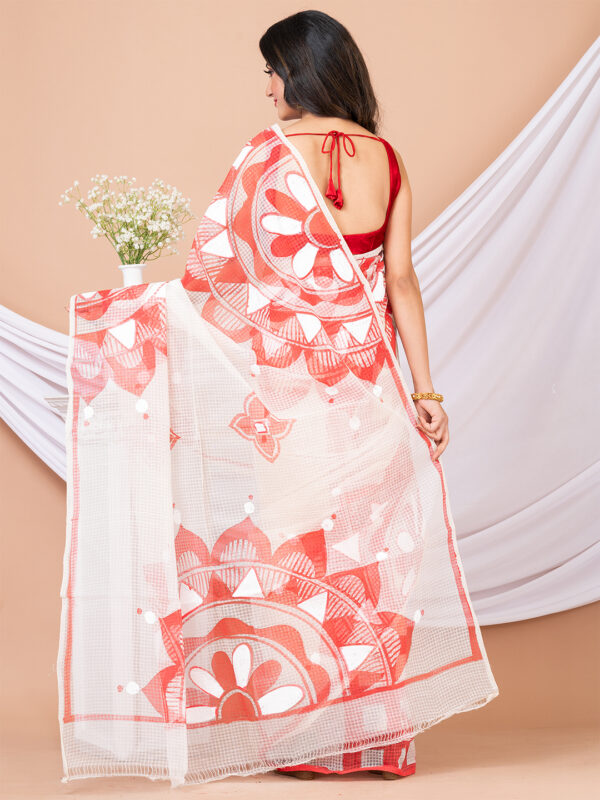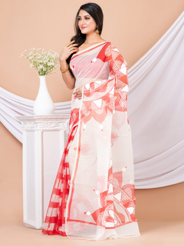 White & Red Hand printed Resham kota saree