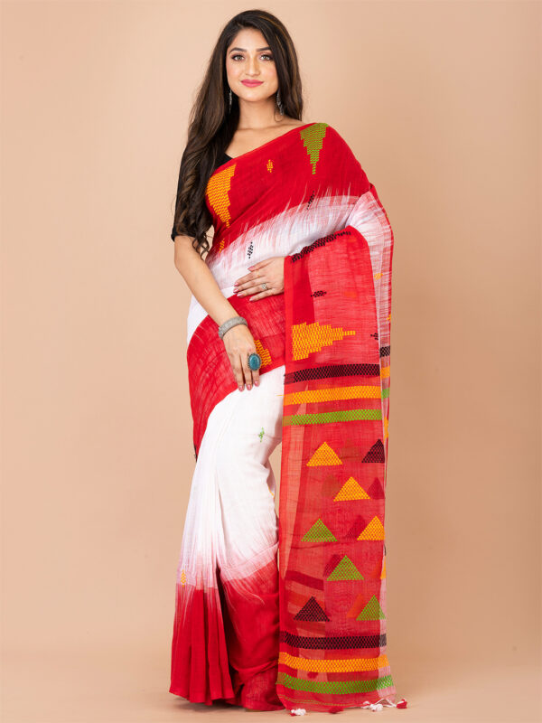 White & Red Handloom Saree