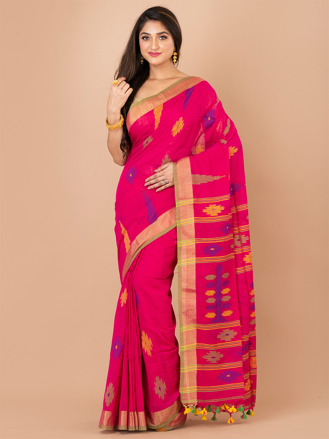 The Handloom sari is a traditional Indian attire that can be worn on all