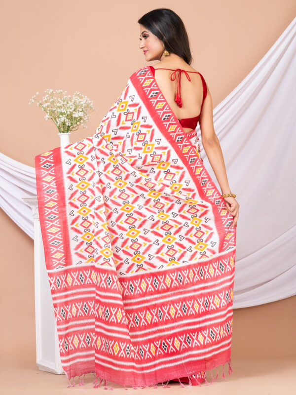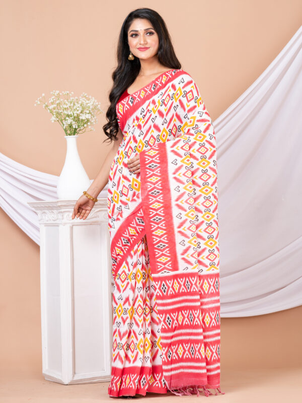 White & Red Pure cotton printed Handloom Saree