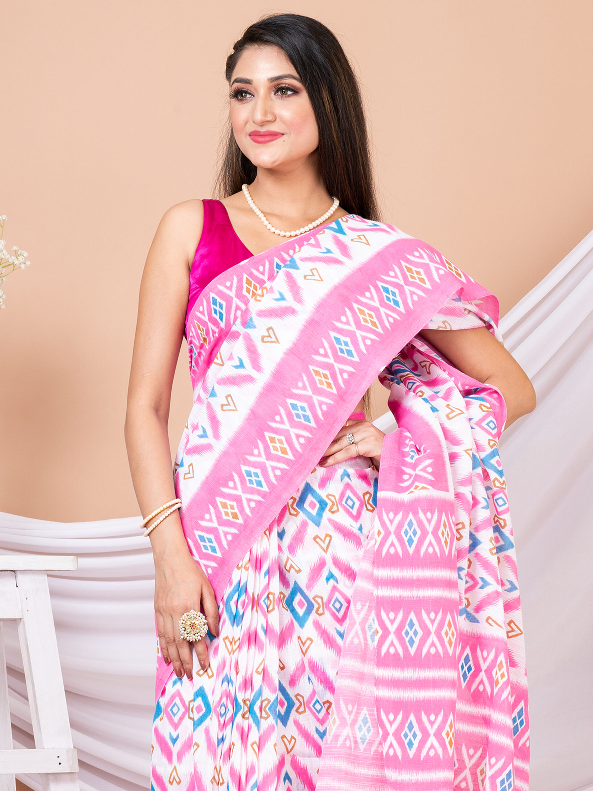 among women in India. This handloom sari is made from soft cotton fabric