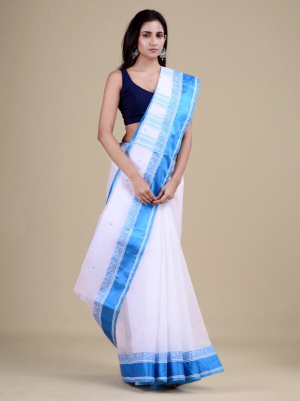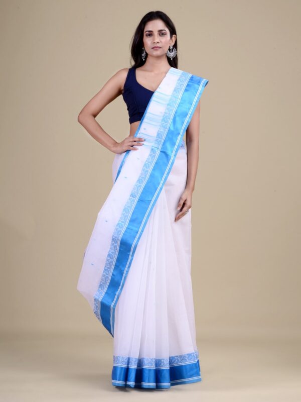 Be the first to review “WHITE & SKY BLUE TANT Cotton Saree.”