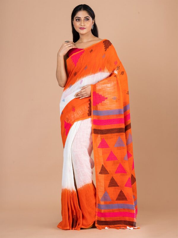 WHITE,ORANGE & BLUE HANDLOOM Saree.