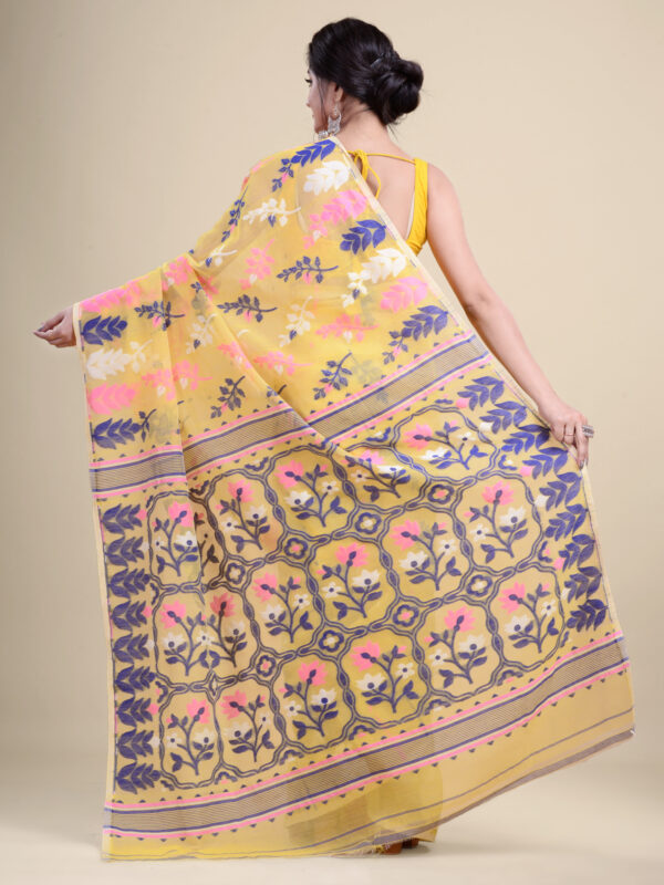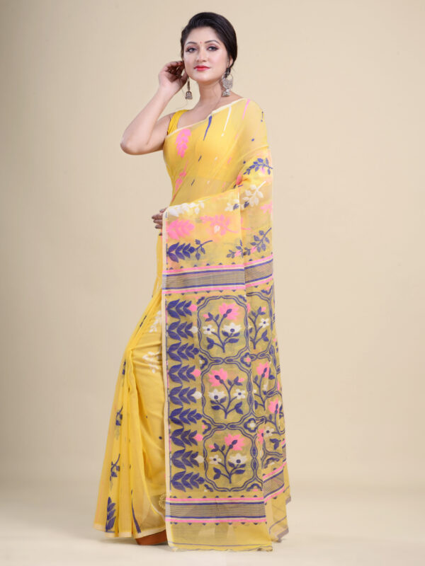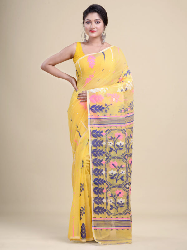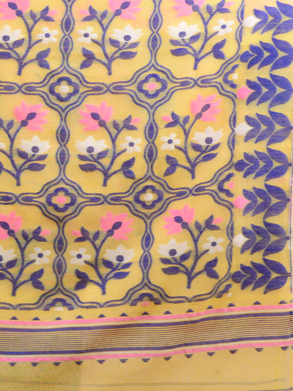 Yellow & Blue pure cotton Dhakai Jamdani Saree.